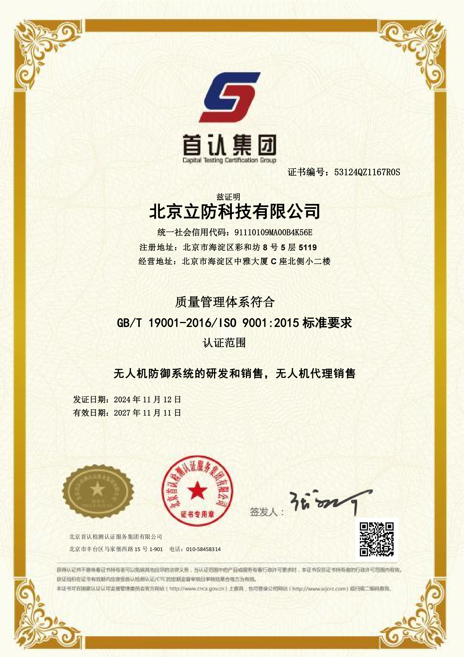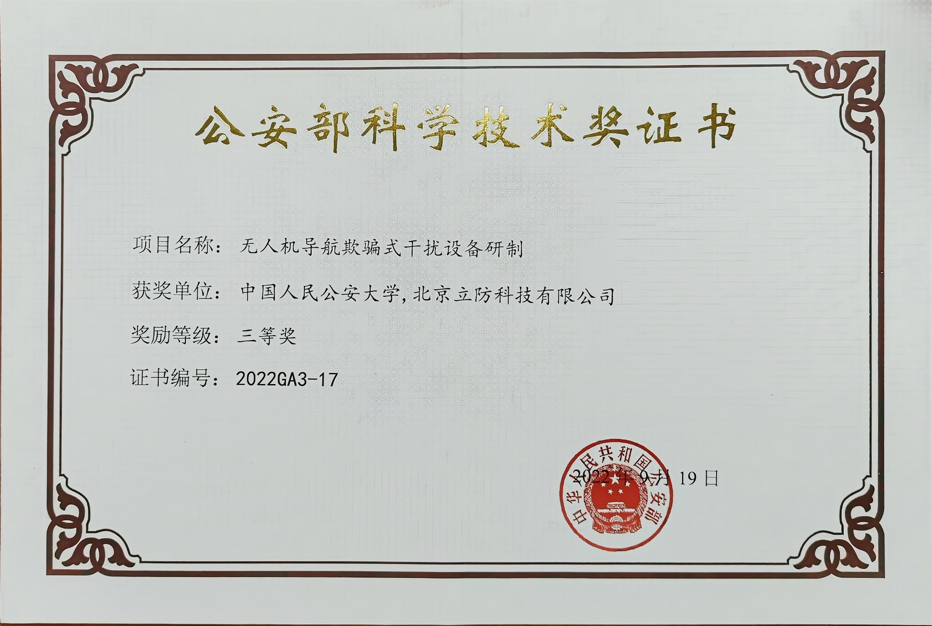 公司2017年榮獲“反無人機(jī)十大品牌”;2018年與中國(guó)人民公安大學(xué)中國(guó)低空安全研究中心簽署戰(zhàn)略合作、匯聚政產(chǎn)學(xué)硏資源,共同創(chuàng)造開放的生態(tài)系統(tǒng);2020年作為主要參與單位獲得公安部課題結(jié)項(xiàng)證書;2022年榮獲公安部科學(xué)技術(shù)獎(jiǎng)勵(lì)三等獎(jiǎng)。2023年首次定義了國(guó)內(nèi)唯一的C-UAS系統(tǒng)(無人機(jī)管控技術(shù)系統(tǒng)),構(gòu)建全方位、多手段、固定和機(jī)動(dòng)、遠(yuǎn)中近、高中低相結(jié)合的無人機(jī)偵測(cè)反制裝備體系,提升無人機(jī)偵測(cè)反制實(shí)戰(zhàn)效能。2024年成功申請(qǐng)河北省科技廳課題《低空安全關(guān)鍵技術(shù)與應(yīng)用示范》。公司與中國(guó)移動(dòng)、中國(guó)聯(lián)通、中國(guó)電信均建立良好合作關(guān)系,打造全國(guó)廣域覆蓋無人機(jī)遠(yuǎn)程識(shí)別系統(tǒng)。